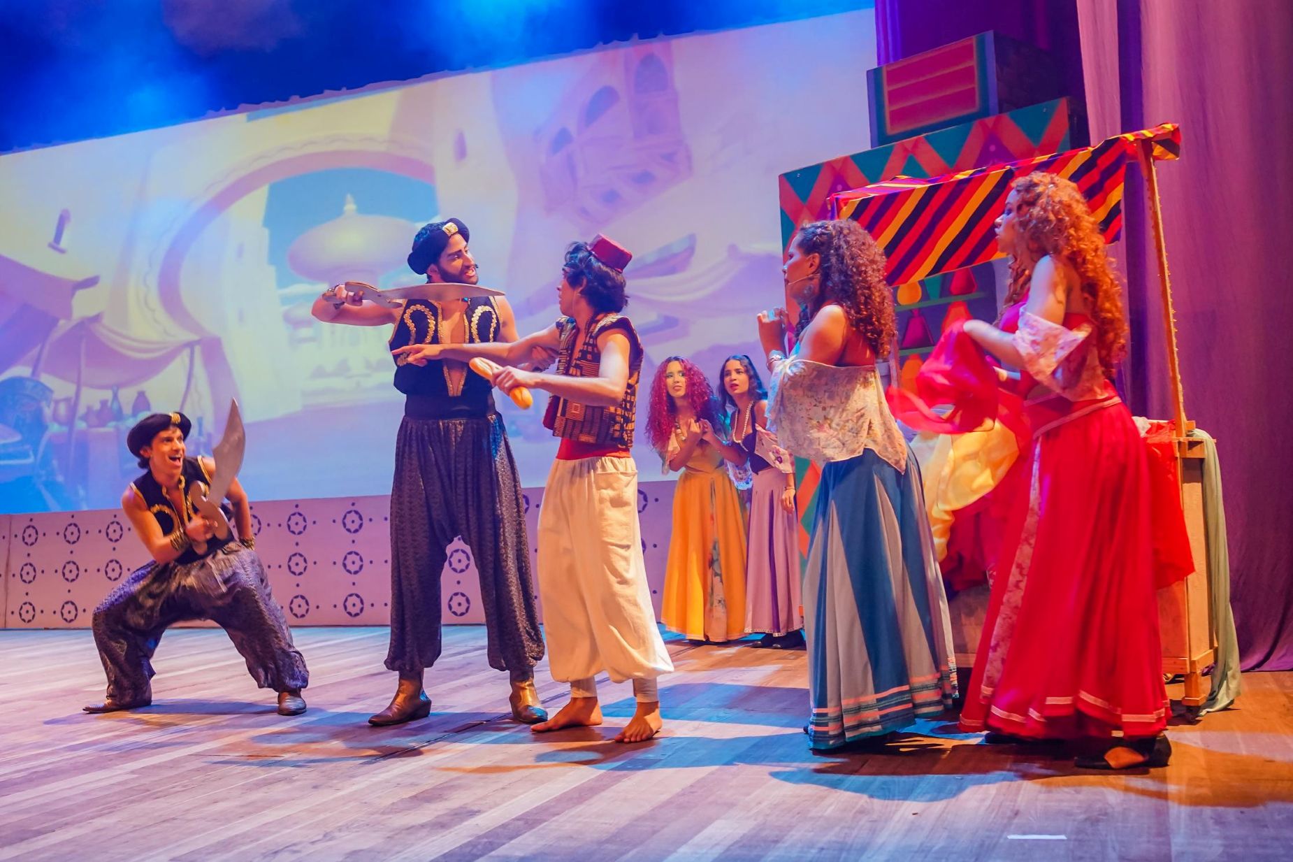 espetáculo cantado ao vivo, Aladdin – O musical será encenado no Teatro Luiz Mendonça neste domingo, 24 de agosto de 2025, às 16h30.