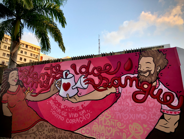 Dia desses passei em frente, prestando a merecida atenção, ao mural da Fundação Hemope – pintura assinada pelo artista e comunicador multiplataforma, Rafa Mattos.