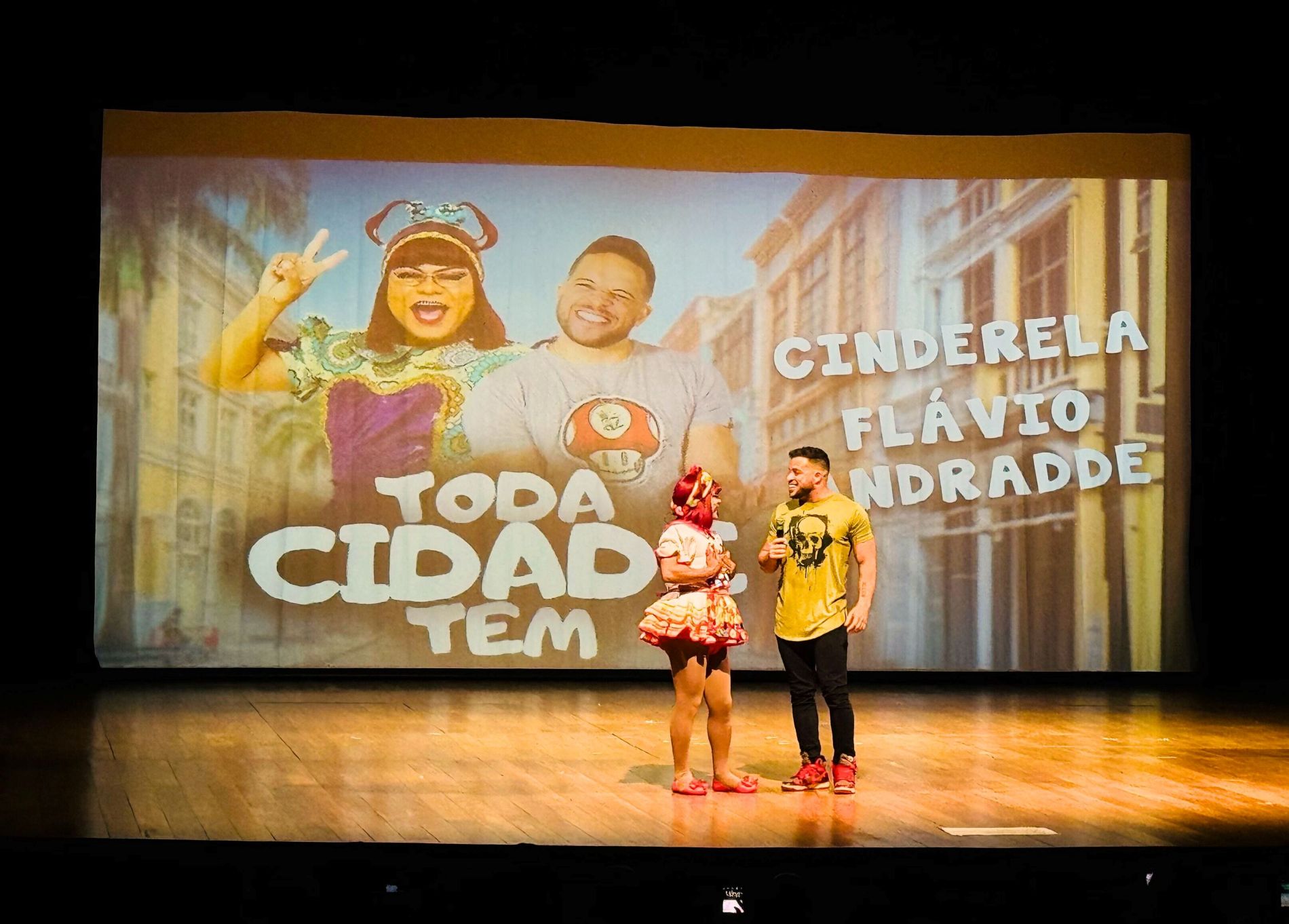 ‘Foi um encontro de gerações, pois sempre fui fã de Cinderela e consegui participar de seu programa Papeiro da Cinderela por muito tempo e hoje dividir palco com Jeison é algo muito maluco na minha cabeça e quero aproveitar cada segundo deste momento mágico’, diz Flávio Andradde.