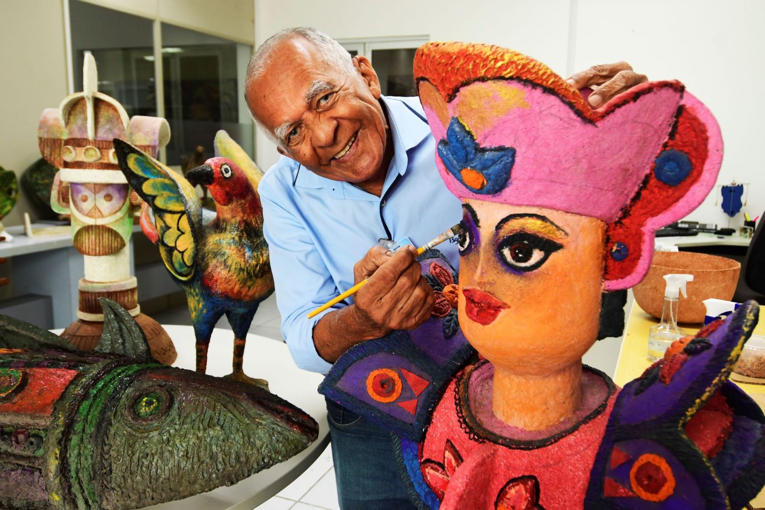 Júlio Gonçalves. Artista autodidata, ele trabalha no ateliê-laboratório na sede da companhia, em Santo Amaro, Recife.