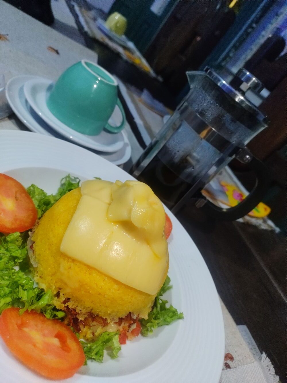 O Cuscuz Roseta (R$19,99) mata a fome de um leão com categoria. É recheado com charque, queijo muçarela, requeijão e tomate – e tome queijo por cima. É bem queijudo. Amo. E, sim, Roseta é uma homenagem a Rosa Maria.