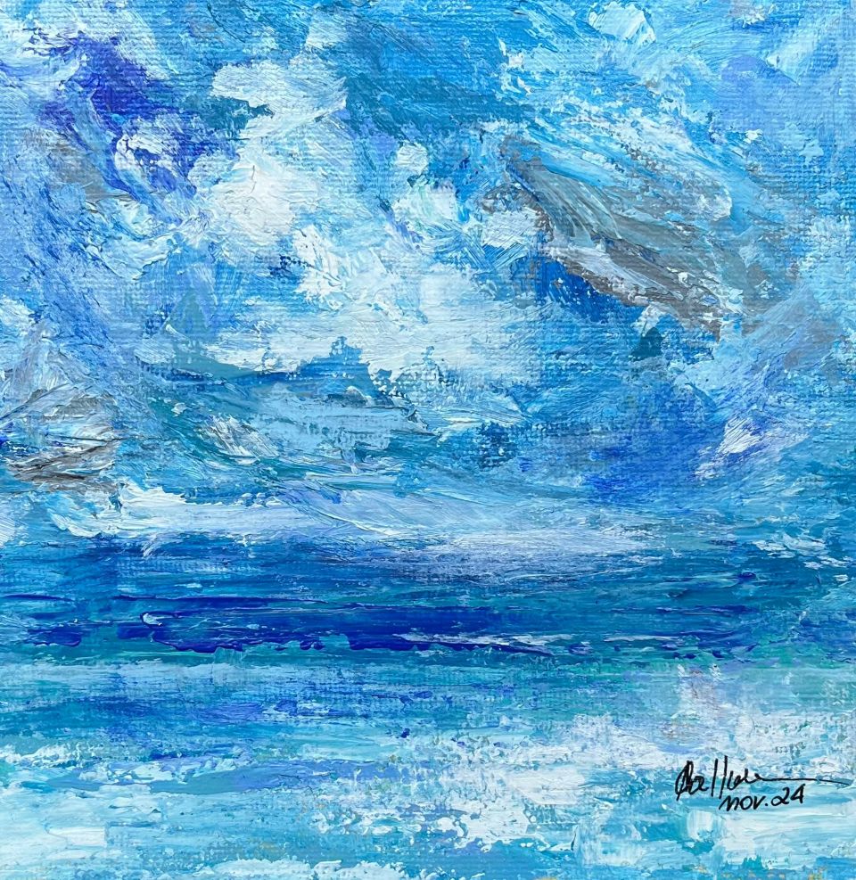 Imagem de abertura do texto: O Simples é Azul, acrílica sobre tela de 2024, 15cm x 15cm, quadro assinado por Angelo Brás Fernandes Callou.