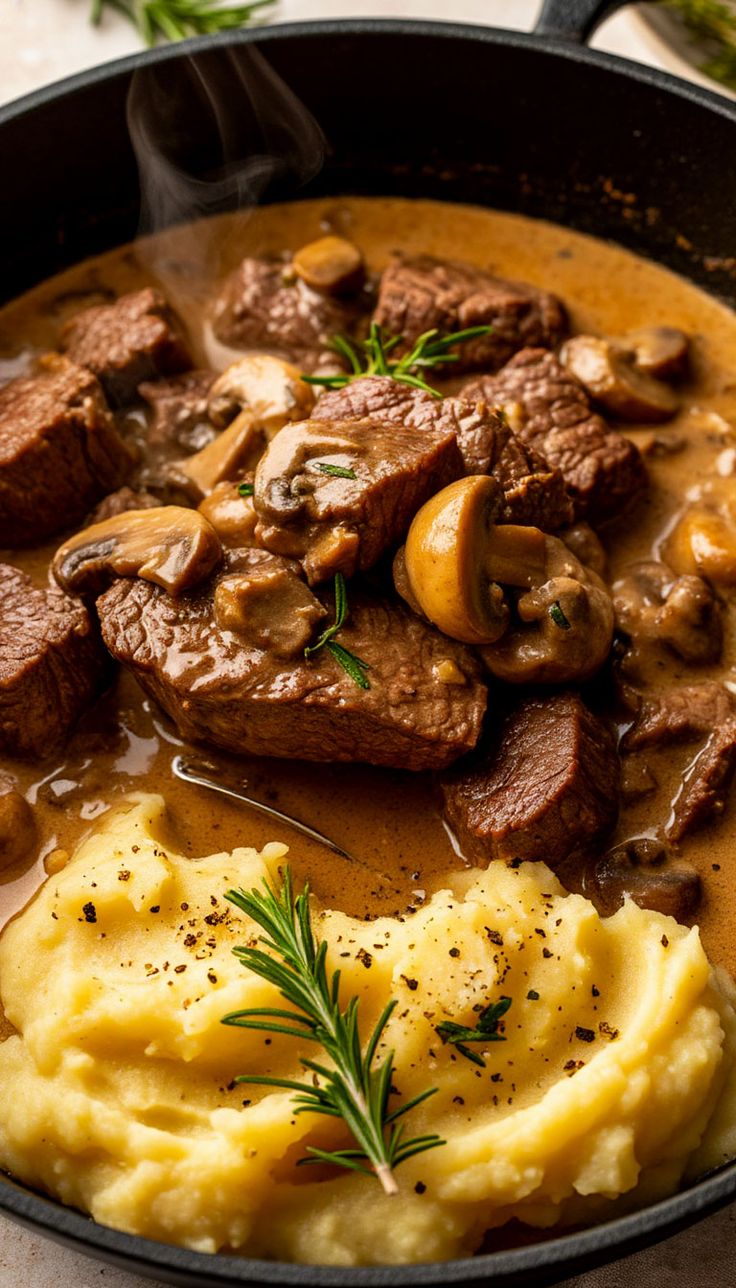 11. Sirva o Stroganoff quentinho (acompanhado com purê) em belíssimos pratos.