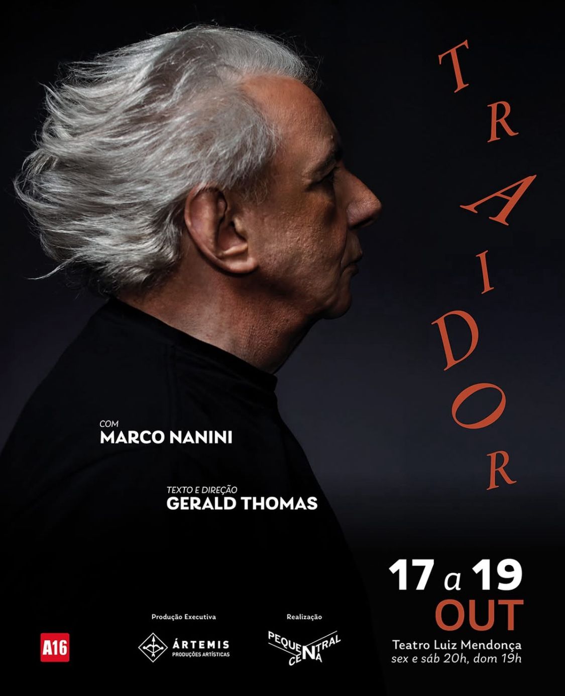 Recife vai receber, de 17 a 19 de outubro, no Teatro Luiz Mendonça, a peça Traidor, com Nanini, obra escrita e dirigida por Gerald Thomas.