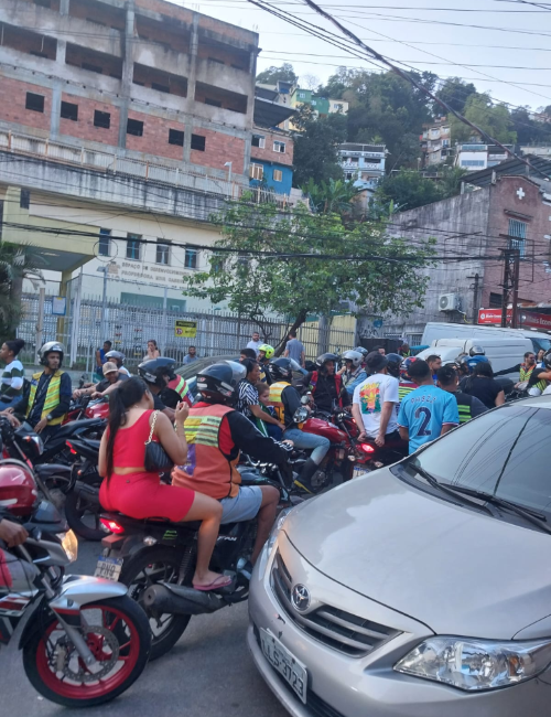 Quando o tráfego trava, mais de 300 motos podem estar engarrafadas ao seu lado. Difícil de saber o que é máquina e o que é gente. Rocinha Way of Life.