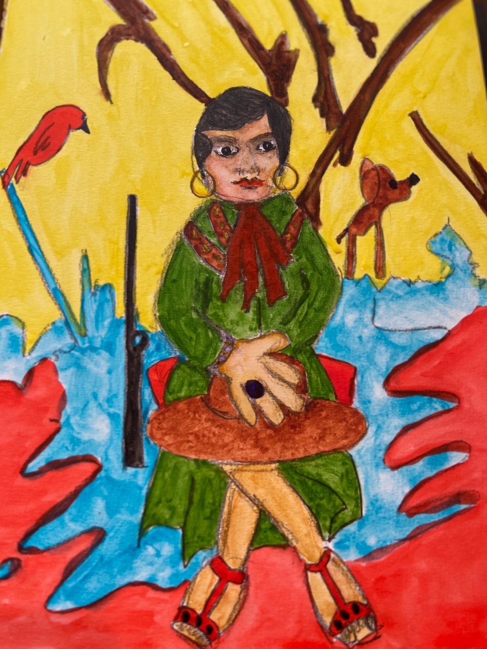 Heloisa dos Devaneios é esta do autorretrato acima. É brasileira e atualmente mora nos Estados Unidos. O momento sócio-político-ambiental caótico e a distância da terra natal, intensificaram o seu desejo de expressão através da arte da escrita. Artista, arquiteta de formação, ela recorre às memórias guardadas, ao momento presente e intuição para inspirar-se. O caminho encontrado por Heloisa dos Devaneios rompe barreiras e nos aproxima. Traz afago e pertencimento.
